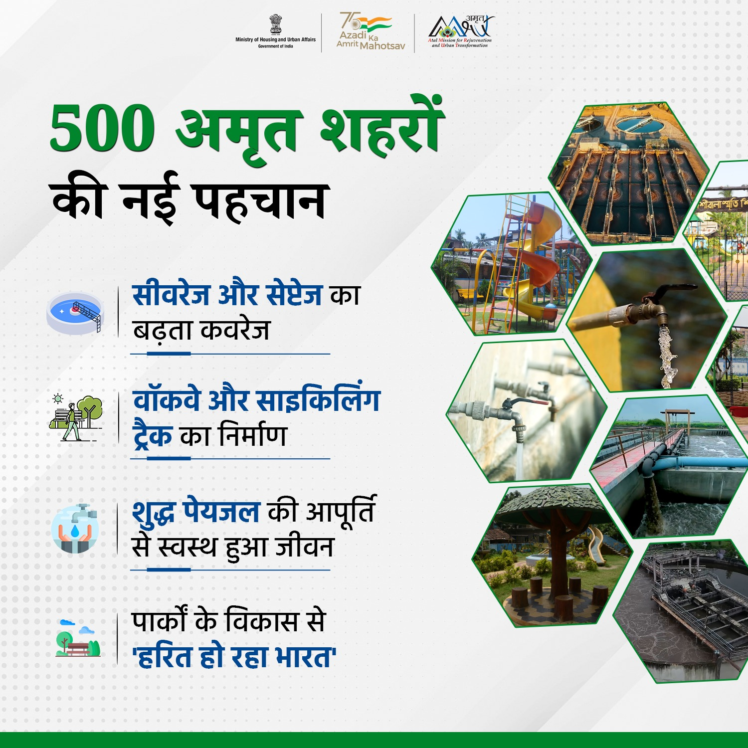 The AMRUT Mission (Atal Mission for Rejuvenation and Urban Transformation) is a Central Government scheme for urban infrastructure (like water supply, sewerage, drainage, and parks).